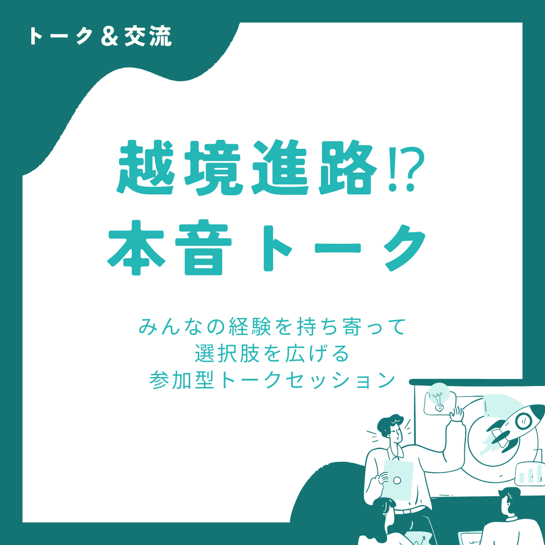 “自分ってどんな人?”から、 未来を見つける、高校生のための2日間。 進学・就職だけが進路じゃない。 100人100通りのキャリアがある。 同じ悩みに向き合う高校生の仲間と対話したり、 学生や社会人のリアルな経験を聞いてみたり、 いつもの「進路イベント」とは全然違う時間が待っている…!?