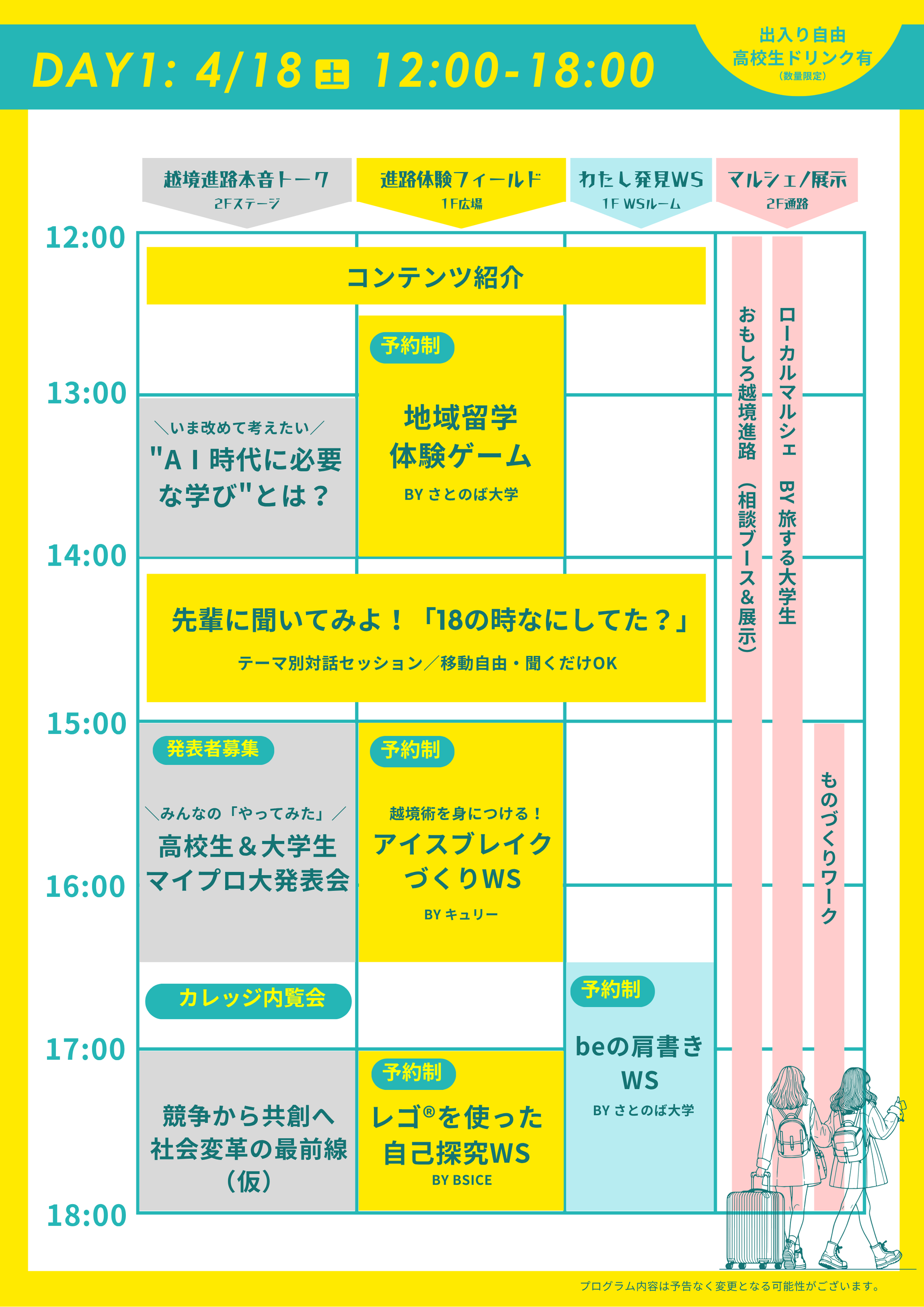| 開催日時 | 4月18日(土) 12:00~18:00 4月19日(日) 10:00~15:00 ※両日とも途中入退場自由 |